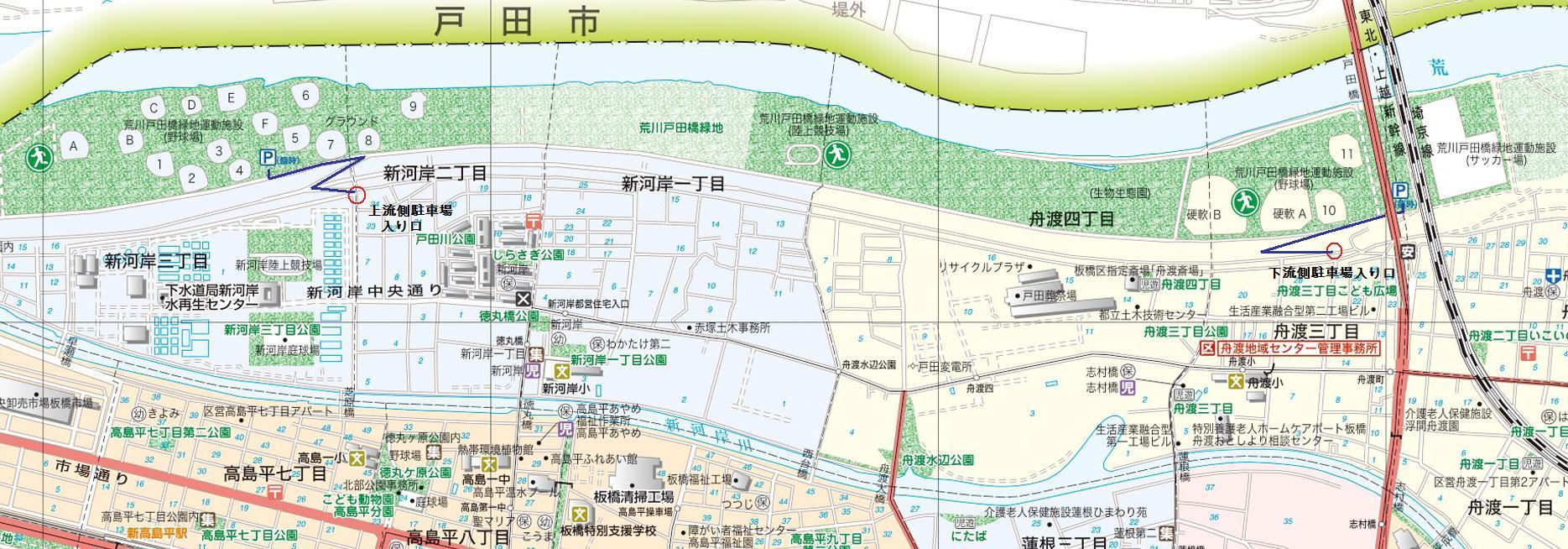 荒川河川敷にある板橋区立体育施設の案内図です。ご活用ください。
