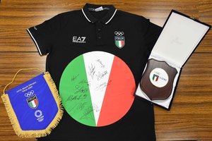 練習場所である館内のアリーナにおいて、板橋区長:坂本健(さかもと・たけし)からカルロ事務総長に区オリジナル扇子が手渡され、カルロ事務総長からはイタリア代表チームのオフィシャルシャツがプレゼントされた。扇子には、板橋区オフィシャルロゴがプリントされており、このロゴは、九州新幹線などで知られる区内在住の工業デザイナー水戸岡鋭治氏がデザインしたもの。また、プレゼントされたシャツにはイタリアバレーボールチームの代表メンバーからのサインをいただき、交流を行った。